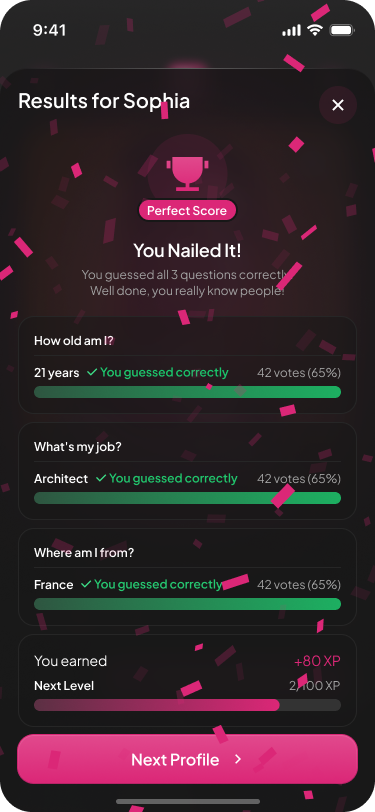 With a deep focus on first impressions, social behavior, and interactive design, we created Judged – a one-of-a-kind social app that transforms connections into an engaging, data-driven experience. By blending Gamification and real-time feedback, we empower users to discover not just what they think – but how they’re perceived.
