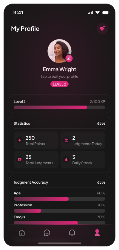 Take a closer look at how Judged brings perception-based dating to life — with sleek design, smart features, and real-time insights.